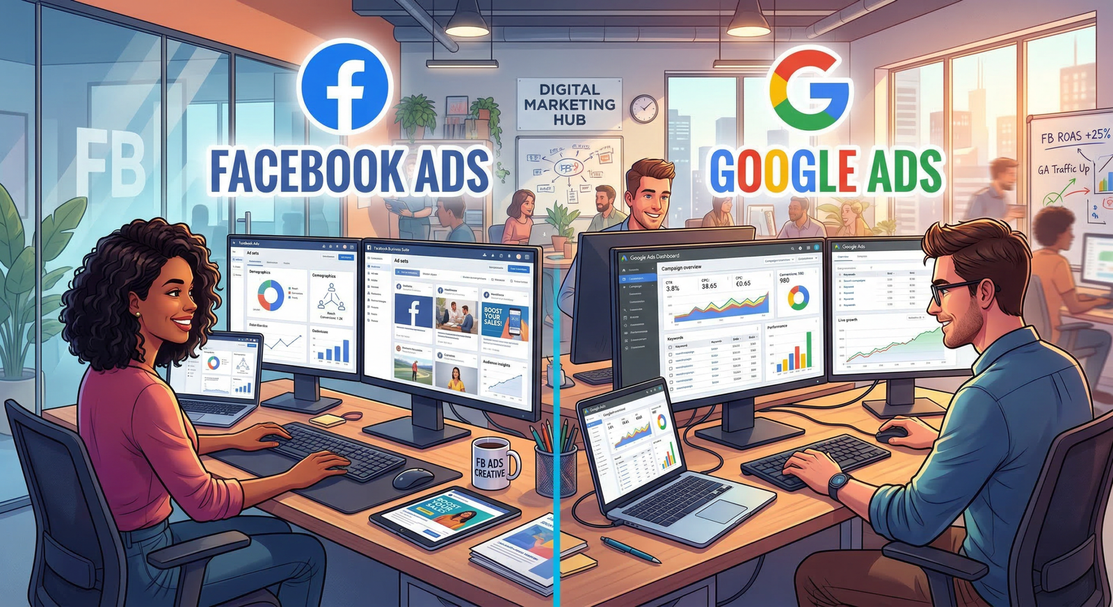 Wij zetten gerichte advertenties op via Facebook en Google om jouw doelgroep effectief te bereiken, meer bezoekers te genereren en je merk online te laten groeien.